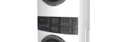 Fully integrated vertical layout takes up half the floor space of a traditional washer/dryer for greater laundry room flexibility, or to fit easily into most closets and other tight spaces. Features a full-sized washer on bottom, a full-sized dryer on the top, and a control panel in the middle for easy access.