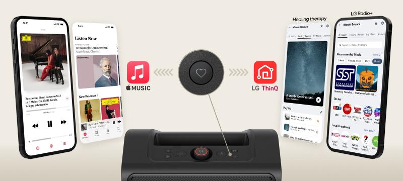 Enjoy a wide range of xboom exclusive content, personalized through LG ThinQ app. Listen to diverse genres of music on LG Radio+, or unwind with curated healing therapy content for a peaceful break from busy routine. Apple Music synchronization and local music file playback make it easy to enjoy your tunes seamlessly.