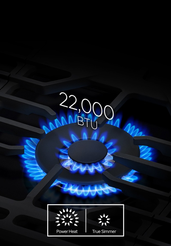 A high power, 22 K Dual Burner provides powerful heat and precise control quickly going from a high heat to a true simmer for intense and even cooking, or turn it right up to boil water in a flash and cook food faster.The Power Boost function can reduce cooking times with an extra boost of heat.