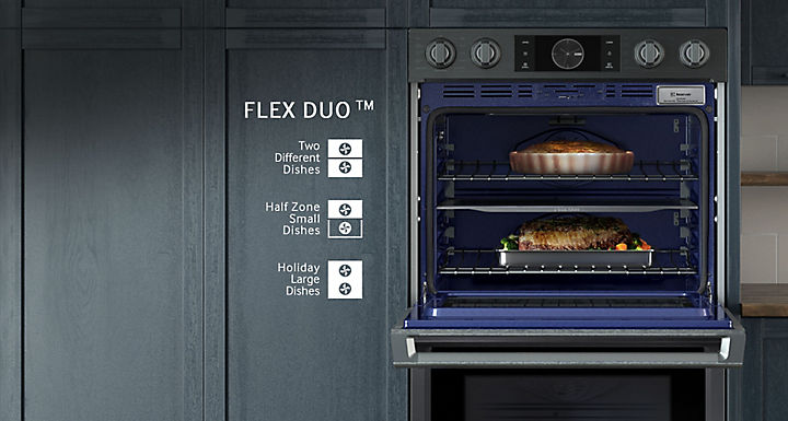 The Flex Duo™ system gives you the ultimate in control. The upper and lower cooking zones can be used independently, to cook different dishes simultaneously with different temperature and time settings, or together.