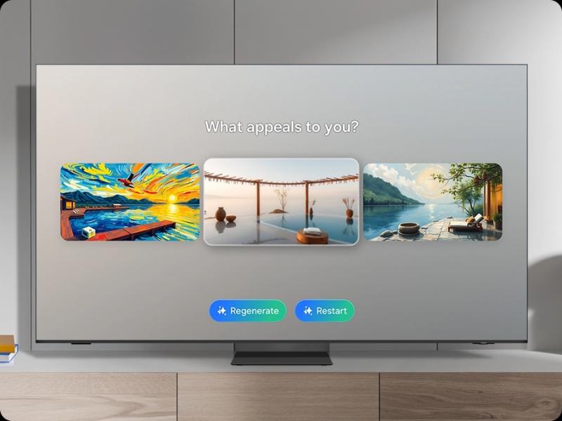 Choose keywords for the ambiance you want, and let AI work its magic. Your TV will generate beautiful, one-of-a-kind images that can change the atmosphere of your home.2