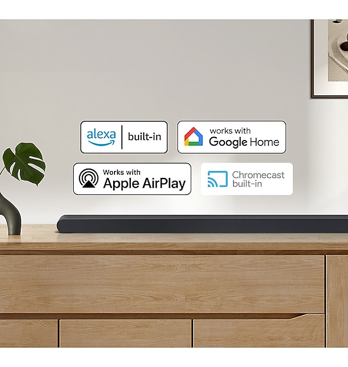 Connect your devices and control everything with our soundbar that integrates your favorite voice assistants and smart services like Built-in Alexa, Chromecast, Airplay 2 and more.