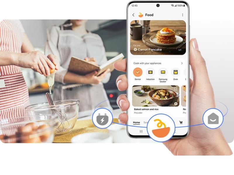 Search recipes, plan meals and pre-heat your oven on your smartphone with the SmartThings App or your favorite voice assistant.* SmartThings Cooking learns your preferences to recommend personalized recipes** and create weekly meal plans.